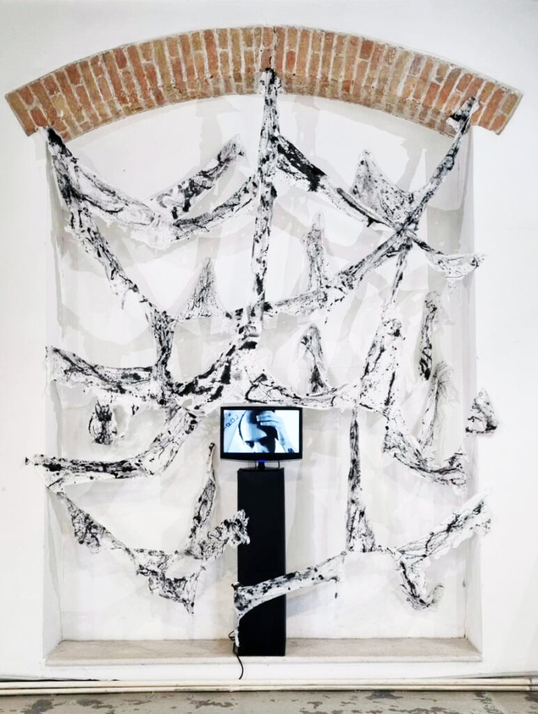 Scelgo l’installazione proprio per dare maggior concretezza e spessore ad un concetto così astratto. Inoltre per me è un altro modo, più stimolante e impegnativo, di rappresentare ciò che già rappresento con la pittura. Mediante l’installazione evolvo il contesto da bidimensionale a tridimensionale: lo spettatore si può immergere in quelle che sono le installazioni site-specific e toccare la materia attraverso la quale intendo rappresentare l’animo umano.